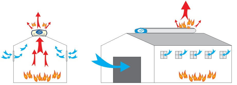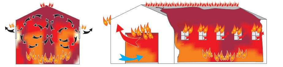 一般來說火災時,產生之濃煙會因熱浮效應往上堆積,但如果濃煙無法順利排出時,由於煙垂現象使得廠房內部大量蓄積濃煙,除會阻斷救火任務外,並可能造成閃燃及煙爆現象,進而引發全面大火,造成現場人員的重大傷亡及財物設備的損失。